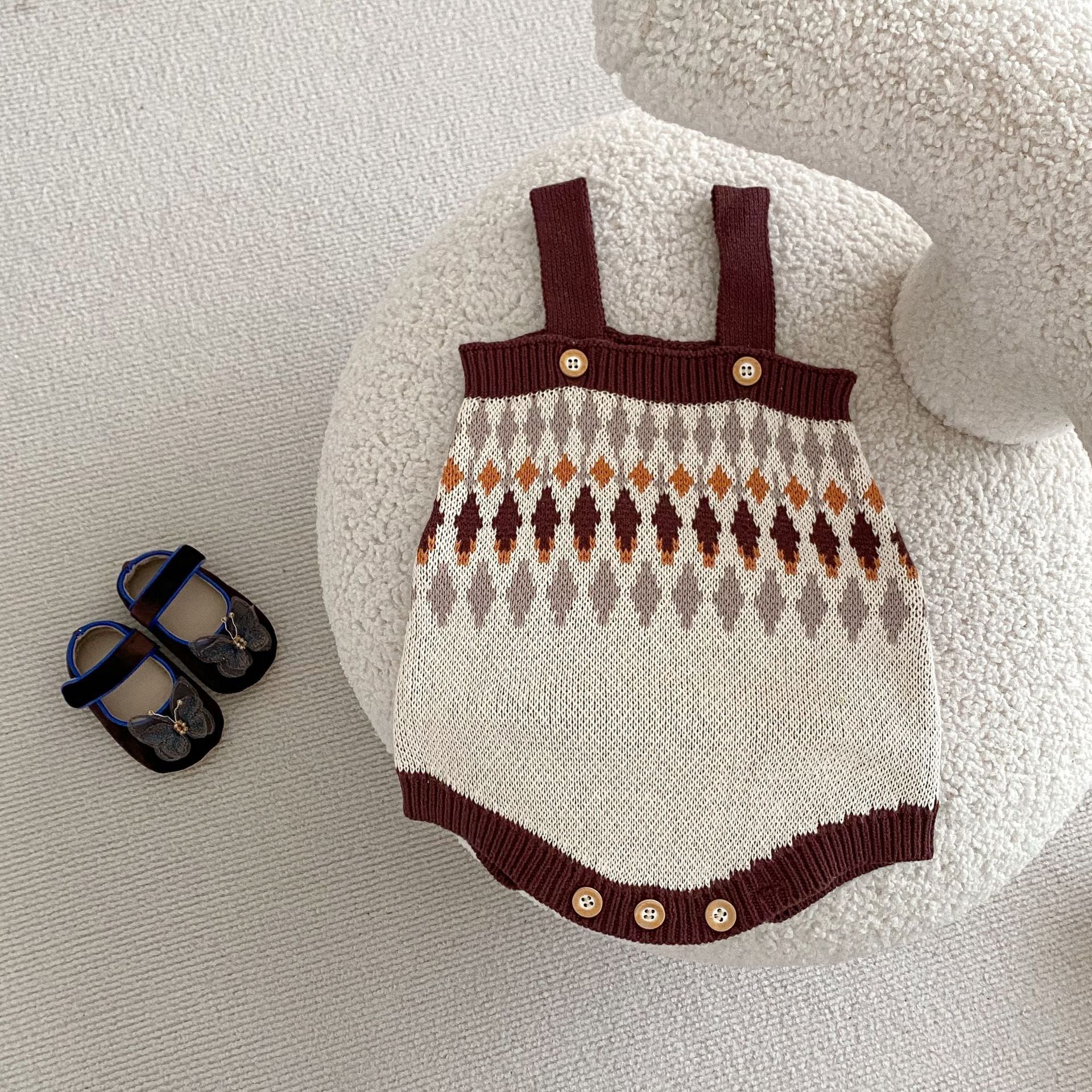 春まで活躍するコットンニット素材を使用したこのロンパースは、シンプルながらもおしゃれなノルディックデザインが特徴です!肌触りが良いコットン生地は、快適さを保ちつつ、特別な日のコーディネートにもぴったり。セットアップ可能なアイテムなので、さまざまなスタイルを楽しむことができるのも嬉しいポイントです。75cmと80cmのサイズ展開で、お子様の成長に合わせて長くご使用いただけます。